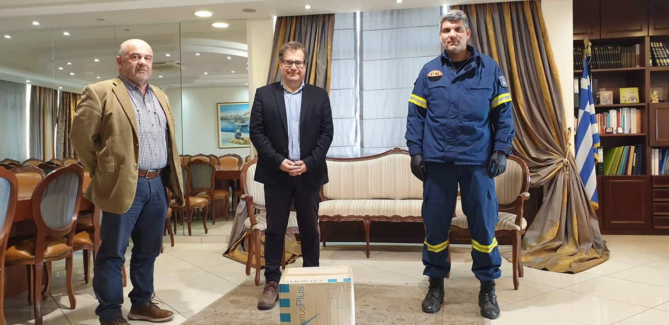Η Περιφερειακή Ενότητα Καβάλας συνεχίζει καθημερινά την προσπάθεια για περιορισμό της διασποράς του κορονοϊού. Για αυτό το λόγο παραδόθηκε στη Αστυνομική Διεύθυνση Καβάλας και στις Πυροσβεστικές Υπηρεσίες Καβάλας και Χρυσούπολης χειρουργικές μάσκες και γάντια για τις ανάγκες του προσωπικού των Υπηρεσιών αυτών που καθημερινά βρίσκονται στη πρώτη...